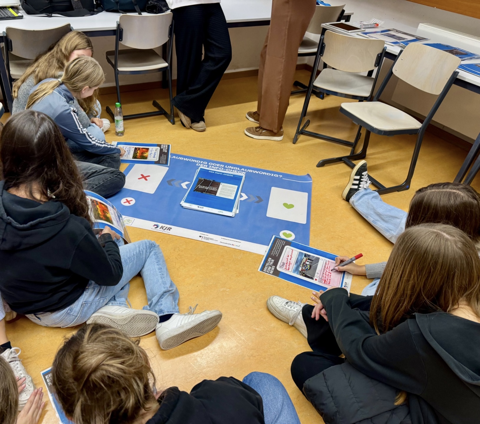 Anhand verschiedener Stationen beschäftigten sich dieses Mal die Schülerinnen und Schüler aller neunten Klassen mit den Themen Rassismus, Diskriminierung, Antifeminismus, aber auch mit Fake News und dem Erkennen vertrauenswürdiger Quellen im Internet. Nicht nur die Auswahl der verschiedenen Workshop-Module wurde als sehr interessant erachtet, auch dass hier junge Erwachsene des Kreisjugendrings mit den Gruppen arbeiten, führt immer wieder zu positiven Feedback bei den Teilnehmerinnen und Teilnehmern.