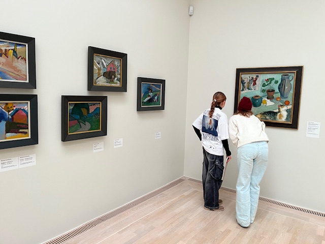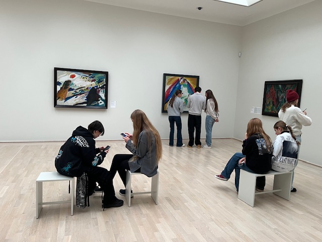 Das Wetter war an diesem Tag wirklich schön und man konnte an einem sonnigen Plätzchen die Aufgabe gut erledigen. Anschließend besuchten wir das Lenbachhaus. Da hier der Schwerpunkt auf dem Blauen Reiter liegt, durften sich die Schüler mit der Analyse und Interpretation eines Originalwerks befassen. Abschließend verschafften wir uns einen Überblick über die Moderne in der Pinakothek der Moderne. Diese eignet sich besonders dafür, sich selbst eine Gemäldegalerie für alle wichtigen Epochen der Abschlussprüfung in Kunst zu erstellen. Wann hat man schon die Gelegenheit, die Werke im Original zu sehen? Des Weiteren durften die Schülerinnen und Schüler auch selbst kreativ werden und ein expressionistisches Gedicht erschaffen oder einen inneren Monolog verfassen. Insgesamt hatten wir einen sehr interessanten Tag der Praxis und Theorie anschaulich verband.