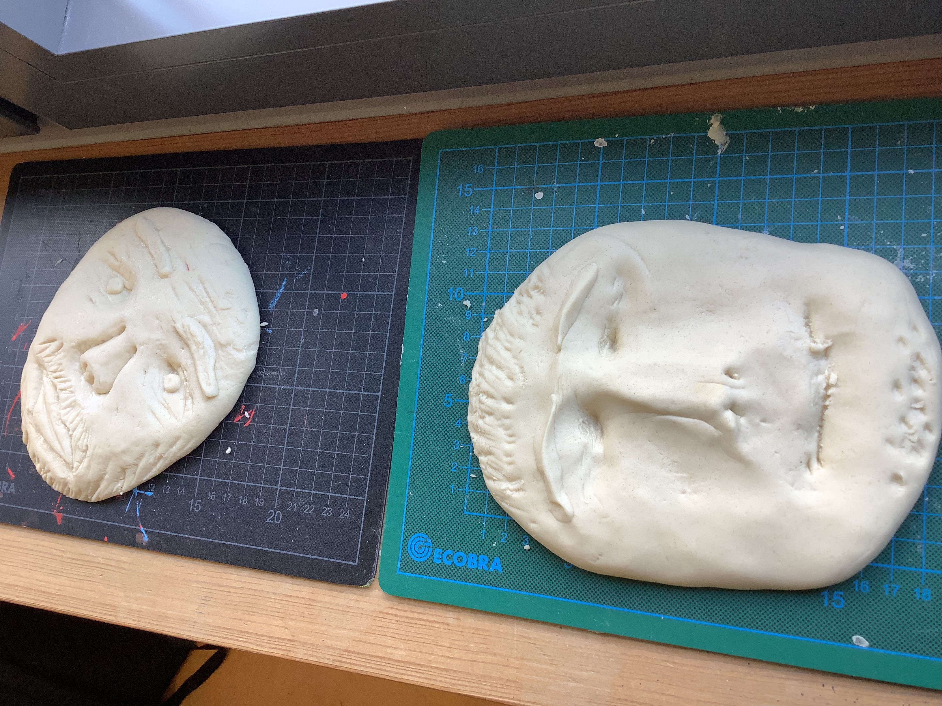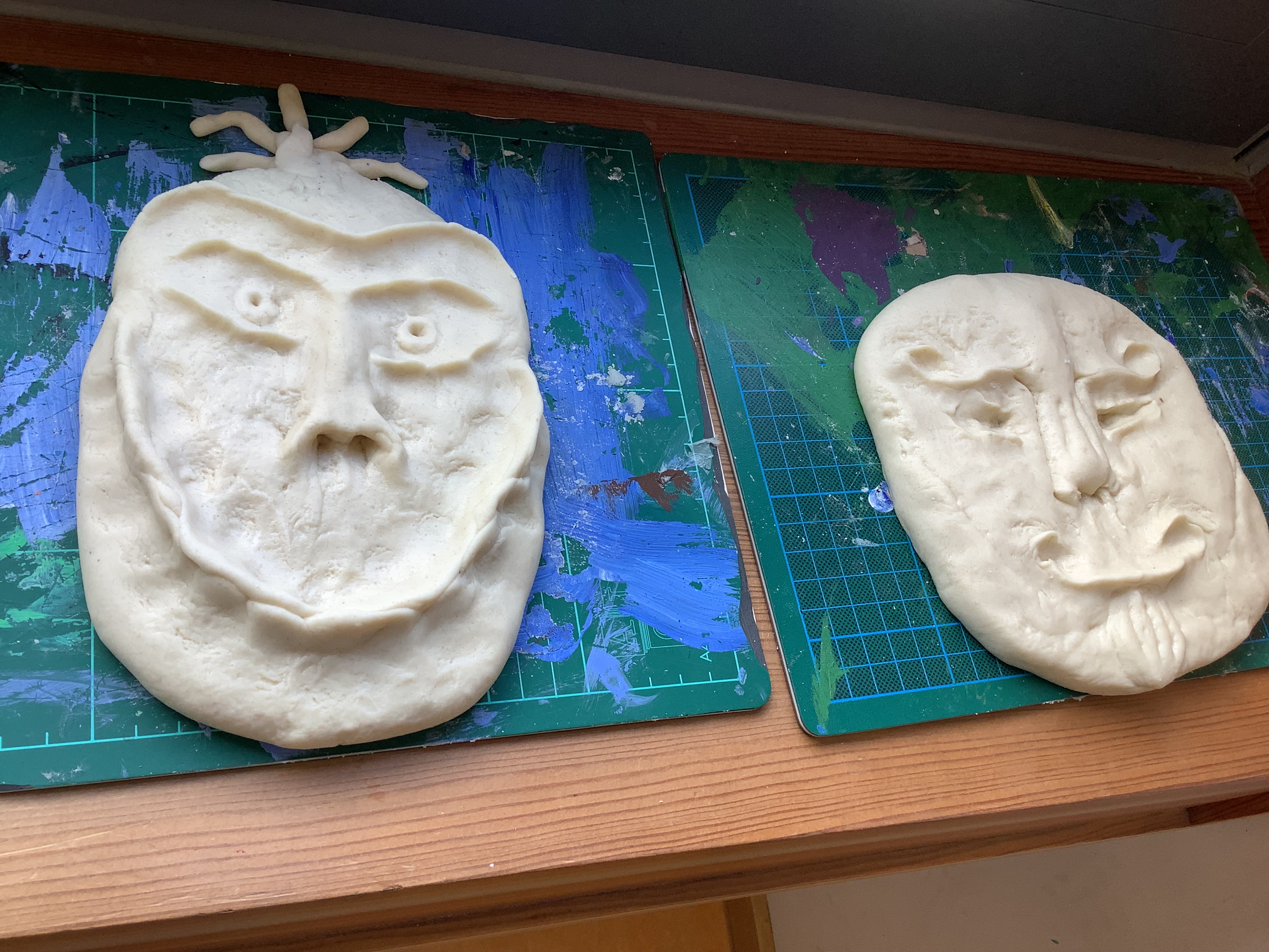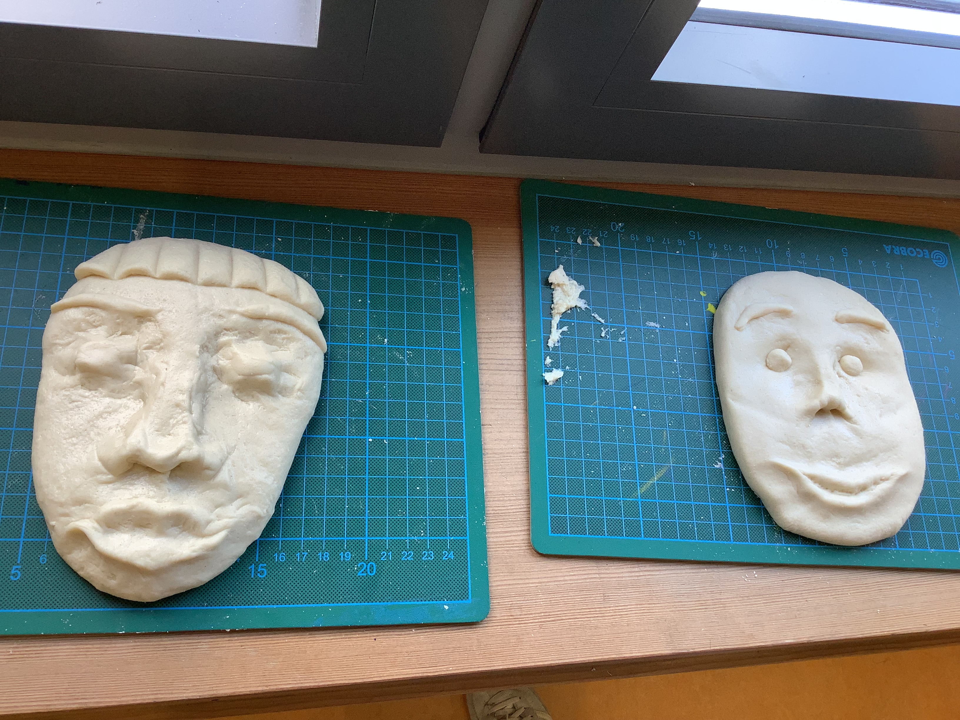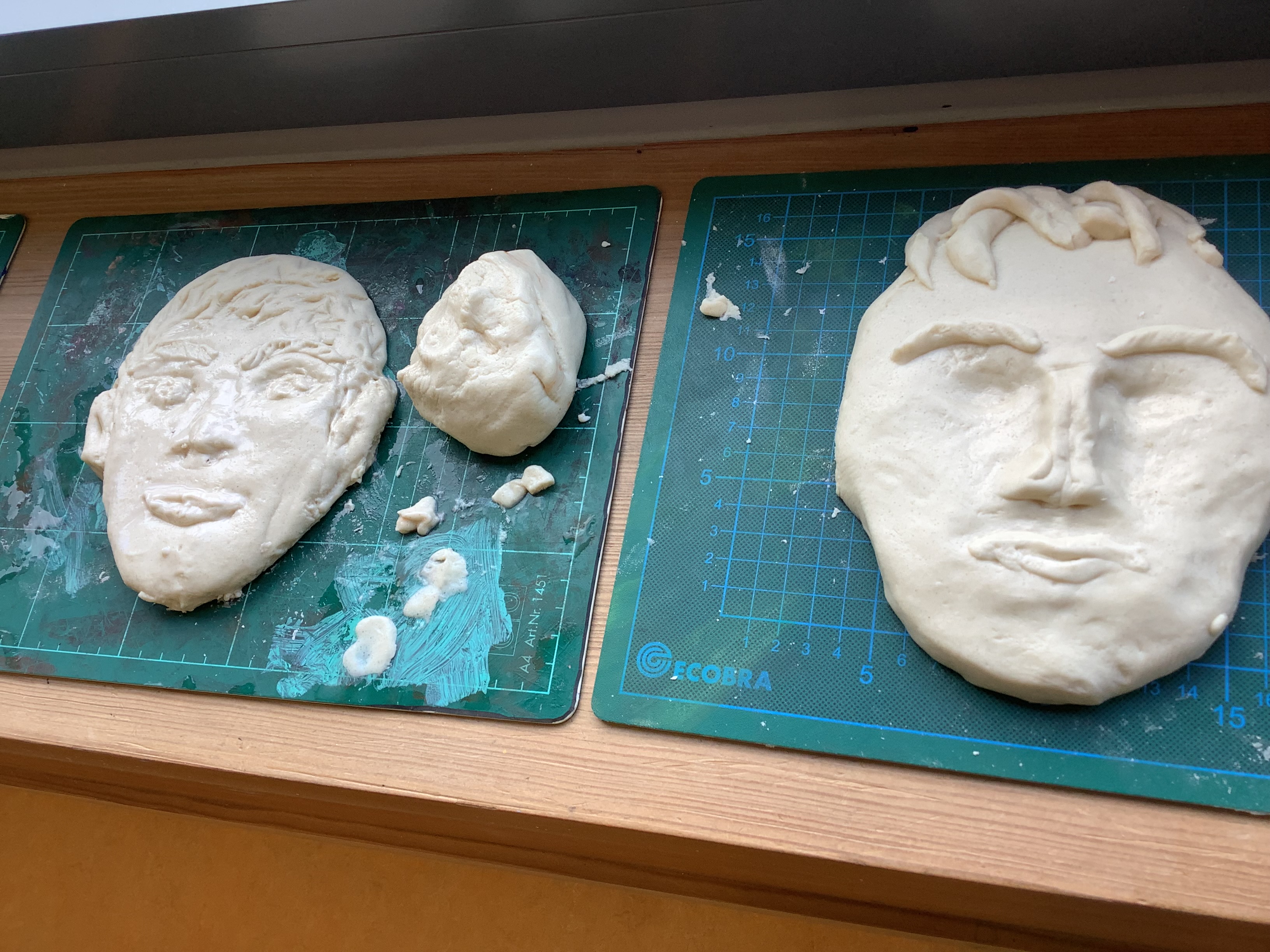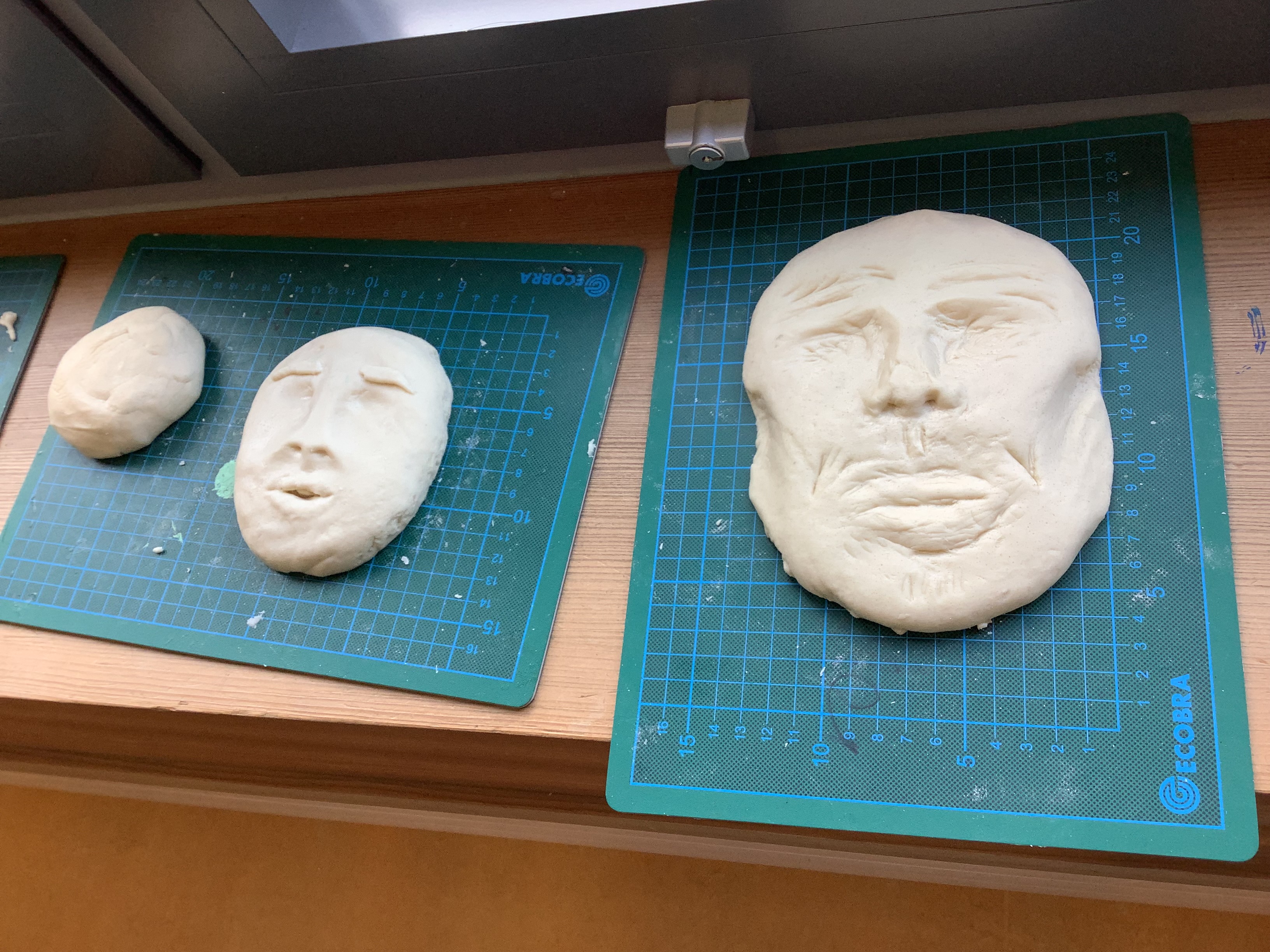 Die Künstler der 10 d starteten dieses Schuljahr mit dem großen Thema "Portrait". Zuerst näherten sie sich zeichnerisch diesem komplexen Thema. Um die Erhöhungen und Vertiefungen im Gesicht spürbar zu machen, modellierten die Schülerinnen und Schüler heute ein Gesicht aus Salzteig.